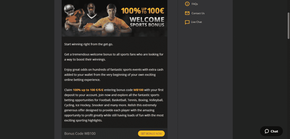Os jogadores também recebem um bônus de 100% até € 50 depois de fazer um segundo depósito. Para reivindicar os bônus acima, os jogadores devem entrar no código dado a eles pelo 18Bet. Os fundos recebidos são apostados em qualquer jogo, seja futebol, sinuca ou vôlei.