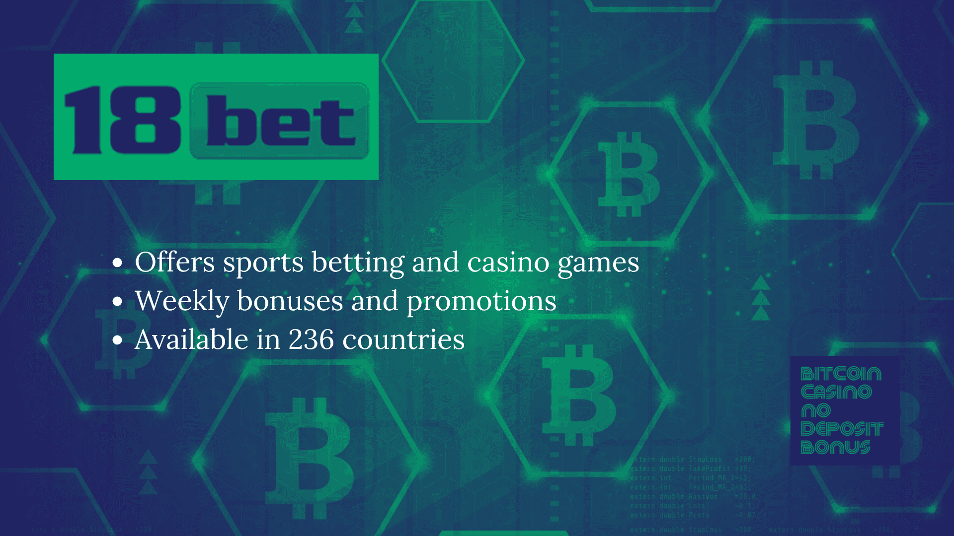 O 18Bet Casino é uma plataforma de jogador abrangente, permitindo que todos os componentes de jogo on-line sejam incluídos. O site oferece um fantástico cassino online com vários jogos de cassino. O site também fornece uma variedade de incentivos diferentes para os jogadores atuais ao longo da semana.