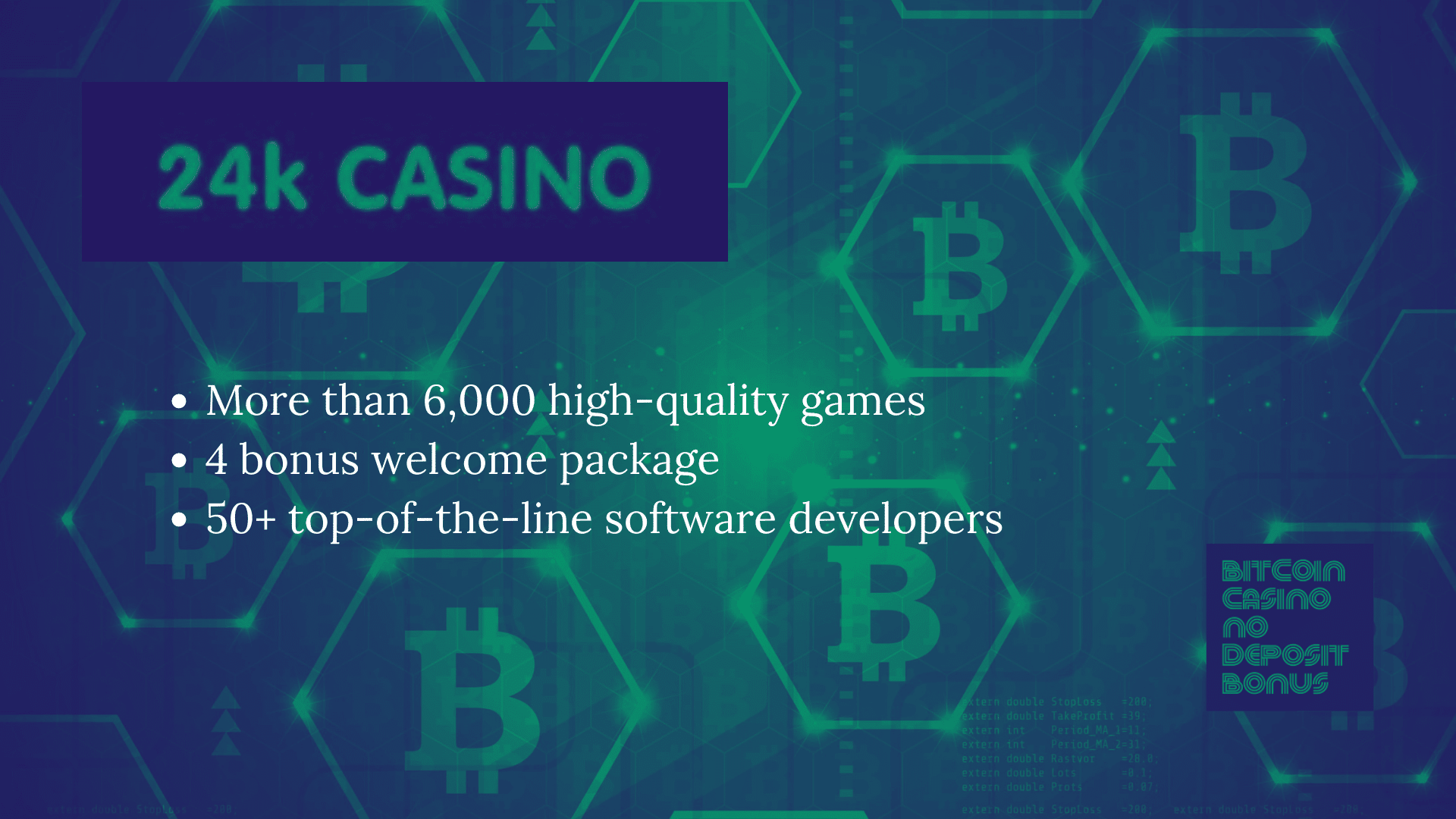 Quando você usa o Código de bônus de cassino 24K Em agosto de 2022, você receberá 100% adicional à sua banca. Isso significa que você pode obter até 300 EUR/BTC gratuitamente, fazendo seu primeiro depósito. Com apenas um requisito de apostas de 25x, que é um dos mais baixos que você encontrará, ele tem termos favoráveis que dão aos jogadores uma chance real de vencedor. Com muitas outras promoções e uma excelente biblioteca de jogos, construiu uma sólida reputação ao longo dos anos