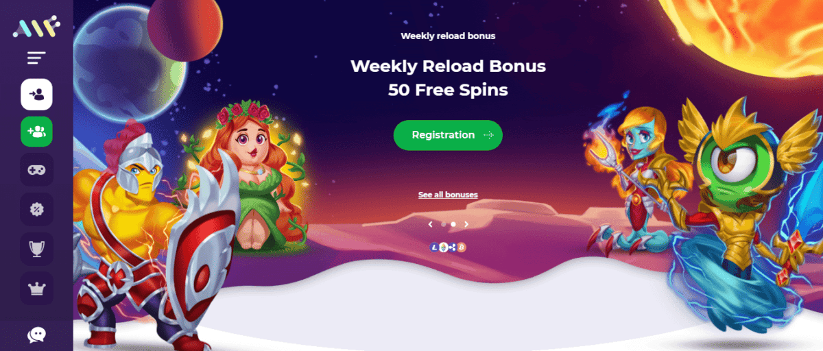 Você também pode desfrutar de um bônus de recarga toda semana, que é pago toda segunda -feira. Fornece jogadores 50 giros grátis que é jogável em um dos últimos títulos. No fim de semana, se você recarregar seu equilíbrio com o Código de bônus do cassino Alf 2022 Você receberá 50% extra junto com 50 rodadas gratuitas anexadas.