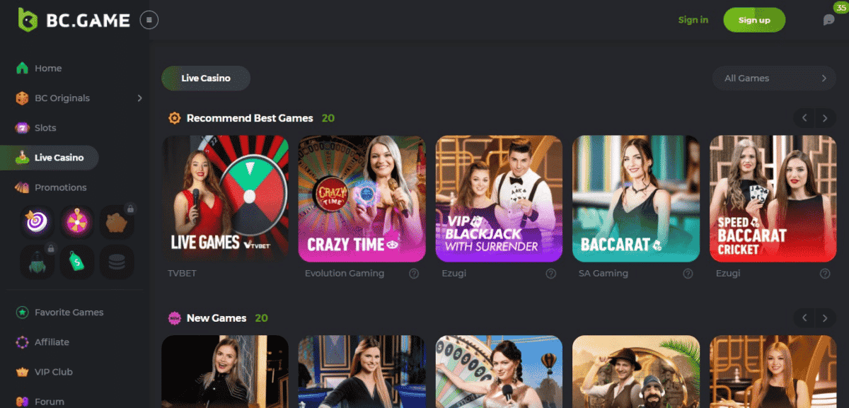 Com certeza, a BC Games se envolveu com essa tendência crescente e atualmente hospeda mais de 100 jogos ao vivo em sua plataforma. A maioria desses jogos é fornecida pela Pragmatic Play, Ezugi e Evolution Gaming, que são os líderes deste departamento e fornecem jogos ao vivo a muitos dos maiores cassinos online.