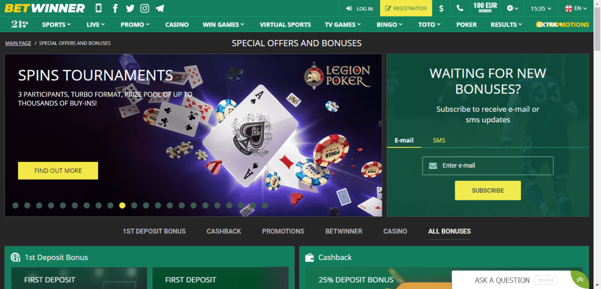 O requisito de aposta para o bônus entre Betwinner é definido em 28 vezes. Comparado com outros bônus semelhantes, esses são termos favoráveis.