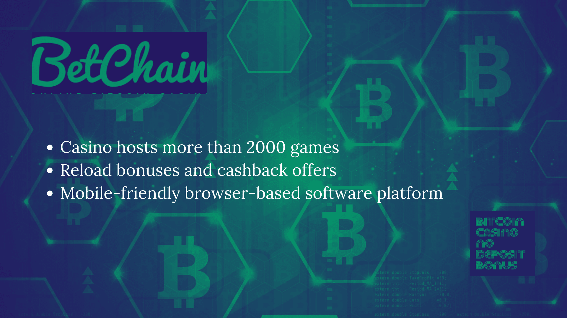A Betchain ganhou muitos prêmios de prestígio por sua plataforma de jogo e continua avançando com a inovação. As rodadas gratuitas para promoções de três meses, 10 rodadas gratuitas no registro e o bônus de boas-vindas de 275 % o tornam o cassino mais gratificante listado em nosso site de revisão e código de cupom. Com excelente suporte e jackpots enormes, além de competições disponíveis, é um ótimo site de jogo de bitcoin em que você pode confiar.