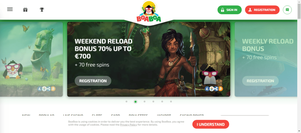 O segundo bônus concede a eles 50% e mais 100 rodadas gratuitas. O depósito final ganha 75% e 50 rodadas gratuitas. O pacote de bônus beneficia o jogo, colocando -os no coração da aventura de cassino Boaboa.