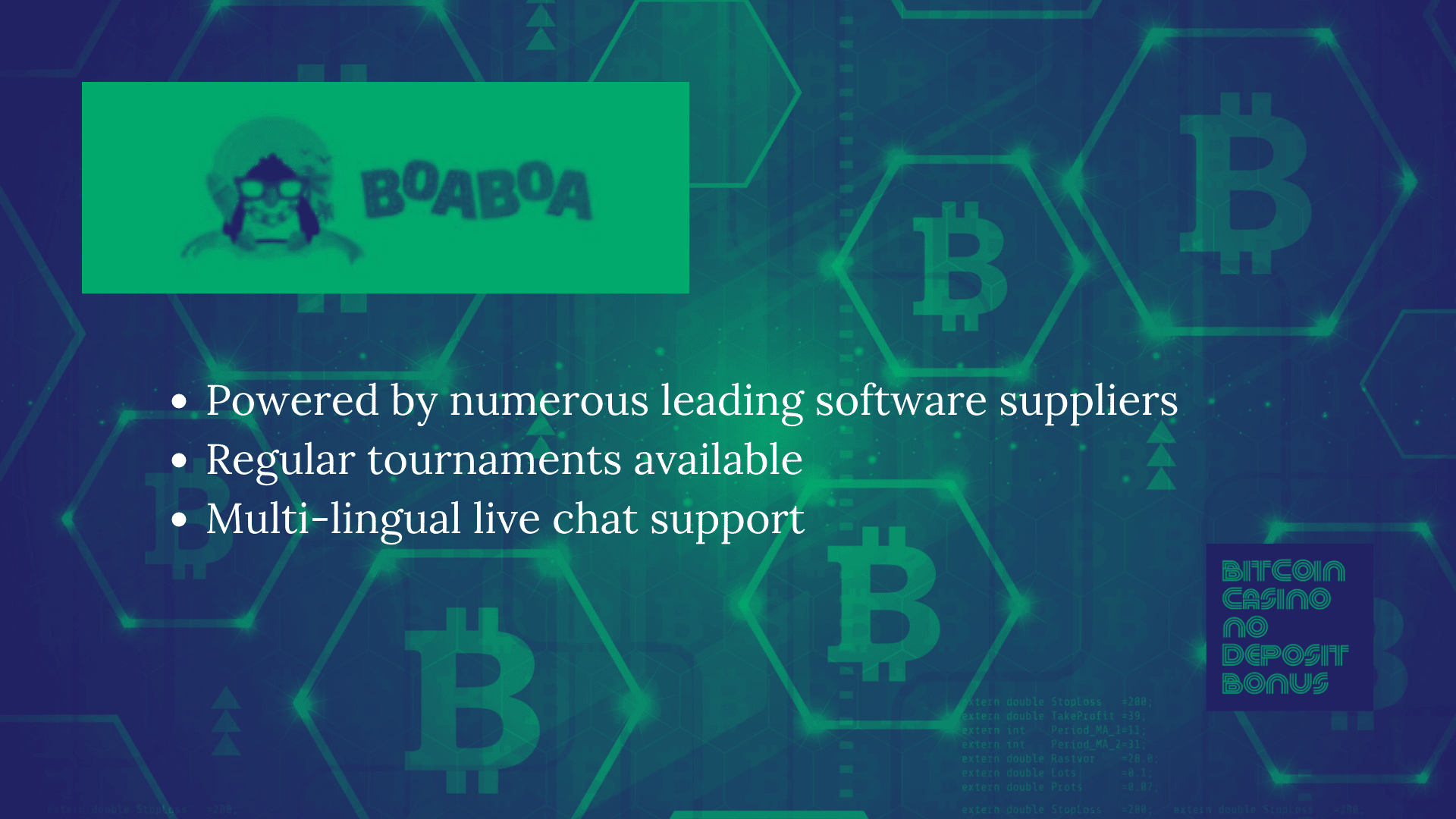 O segundo bônus concede a eles 50% e mais 100 rodadas gratuitas. O depósito final ganha 75% e 50 rodadas gratuitas. O pacote de bônus beneficia o jogo, colocando -os no coração da aventura de cassino Boaboa.