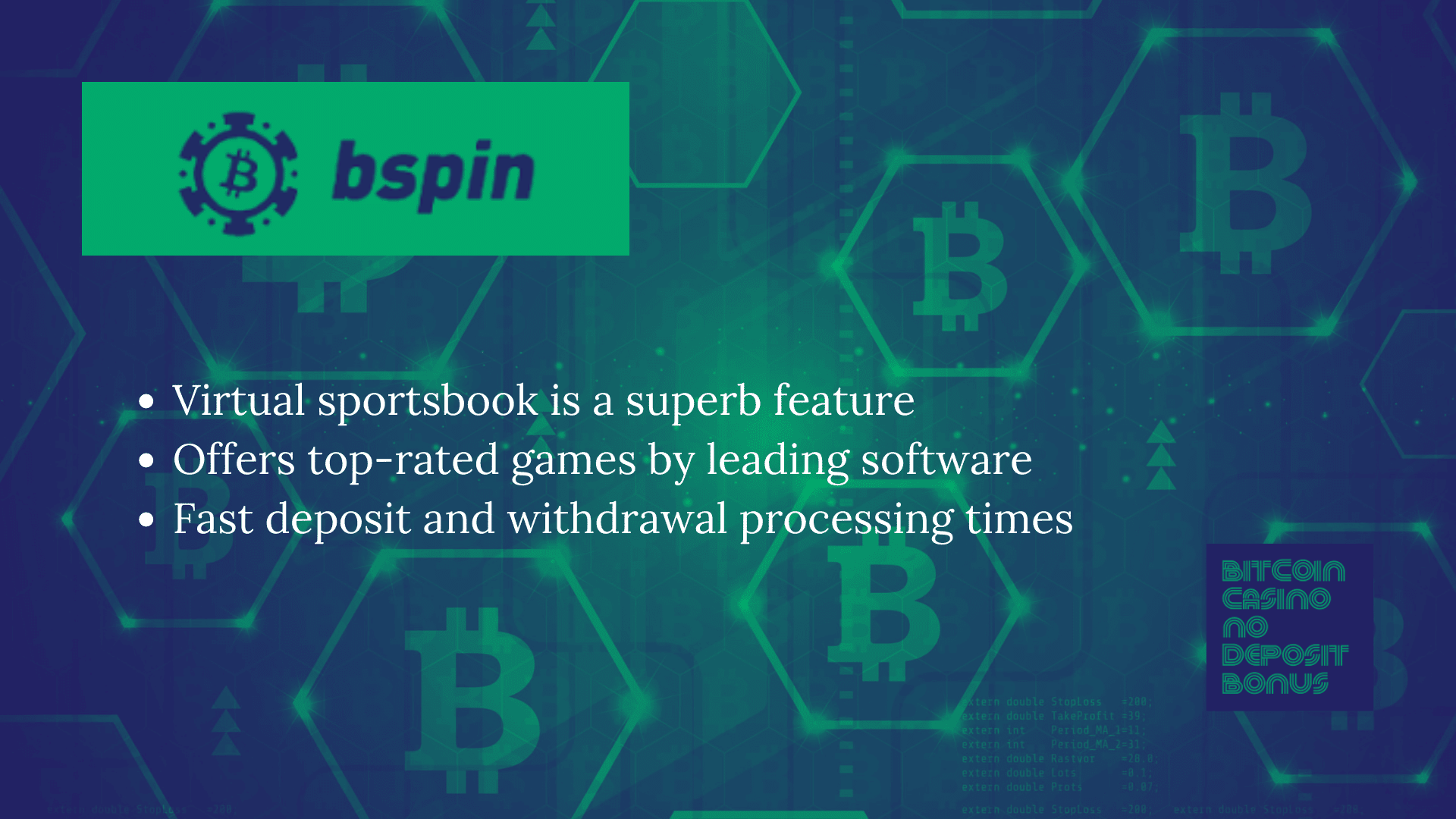 Não recomendamos o uso de nenhum bônus no BSPIN que exige que os jogadores façam um depósito. Existem termos desfavoráveis de apostas e não aprovou nosso processo de verificação.