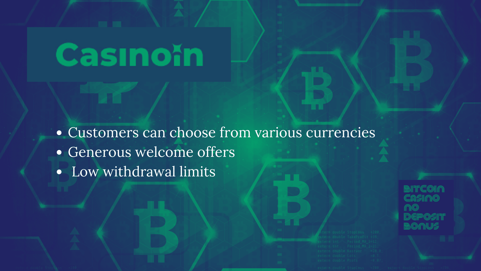 A plataforma Casinoin.io é o pacote completo para jogos tradicionais de cassino online e jogos de azar. Está repleto de uma ampla gama de opções que atende a quase todas as necessidades de jogo. A única coisa que está faltando é a inclusão de títulos de blockchain, mas, além disso, ele marca a maioria das caixas. o Códigos de bônus de cassino de cassino Inclua bônus, como rotações gratuitas, juntamente com uma ampla gama de outras promoções, por isso vale a pena dedicar um tempo para se inscrever em uma conta nesta plataforma.
