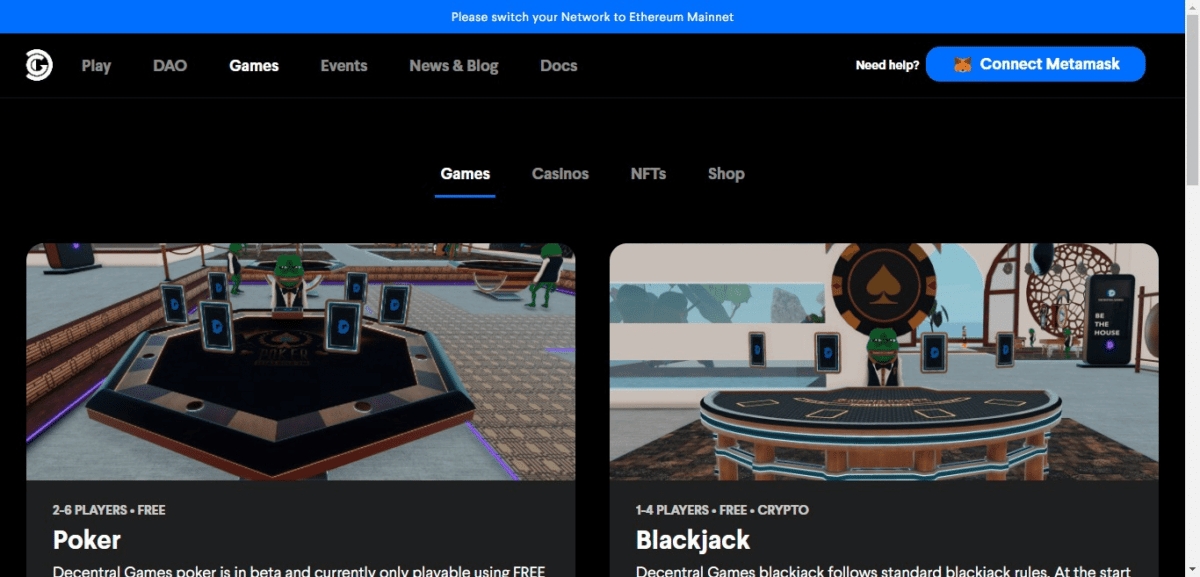 De longe, a maneira mais divertida de ganhar tokens da DG é simplesmente jogar os jogos disponíveis nos cassinos da Decentral Games.