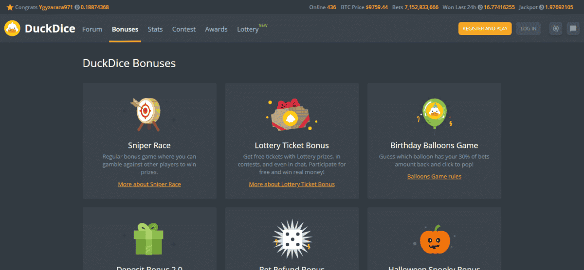 o Códigos de bônus de dados de pato dão criptografia grátis Para jogar o mais recente jogo de dados blockchain que oferece aos jogadores vantagens únicas quando comparadas aos jogos tradicionais de cassino. É uma plataforma que foi criada para recompensar a comunidade e os que participam são bem cuidados.