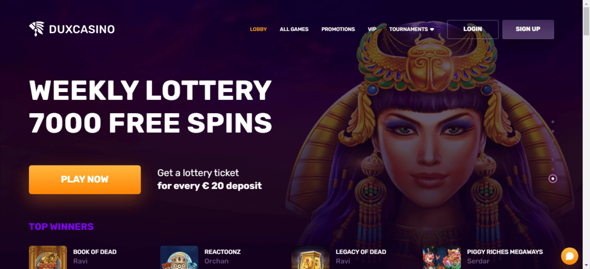 O Dux Casino Weekly Lottery oferece um total de 7.000 rodadas gratuitas nos jogos de ouro Wolf toda semana. Se o Wolf Gold não estiver disponível em certas jurisdições, é complementado pelo Elvis Frog.