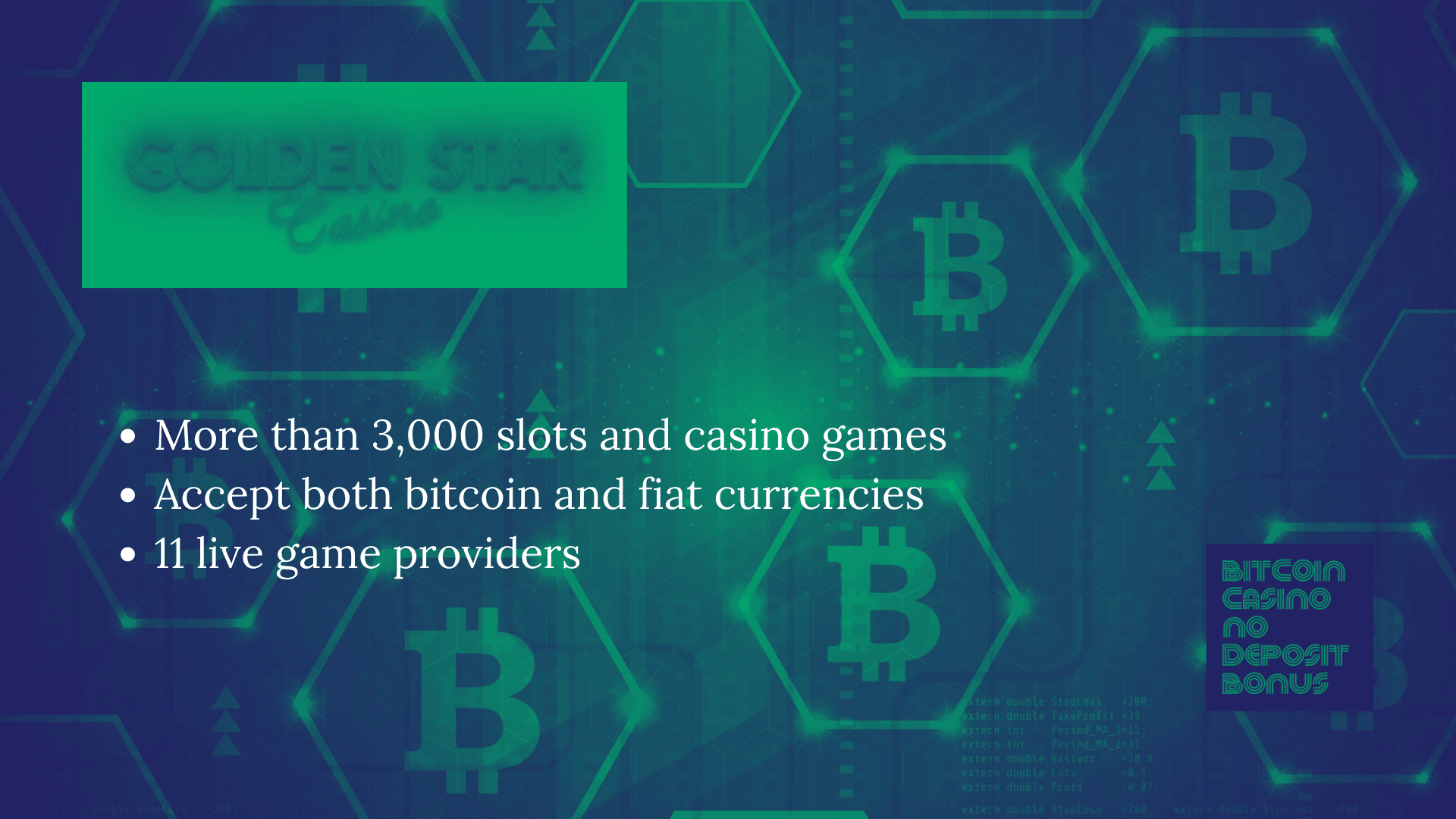 Todos os jogos de cassino da Goldenstar têm uma vantagem da casa anexada; portanto, você precisará de sorte para lucrar ao jogar por um longo período. A melhor maneira de aumentar suas chances de ganhar nesta plataforma de jogo que aceite o Bitcoin é usando o bônus exibido nesta página, pois oferece créditos extras gratuitamente.