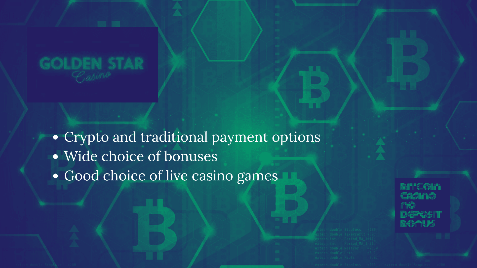 Com quatro promoções de boas -vindas disponíveis quando você fizer um depósito, você receberá muitos BTC e giros gratuitos extra quando usar o Código de bônus do cassino de estrela dourada E você joga nesta plataforma.