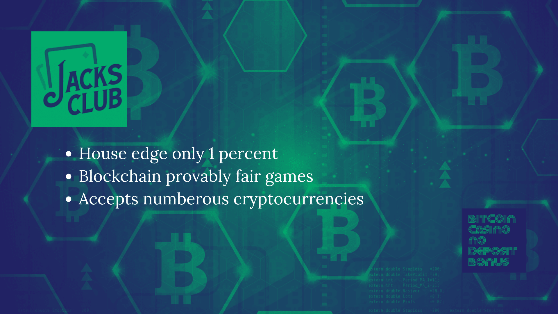 O Jacks Club é um novo cassino que se concentra em atrair usuários que investem seu dinheiro no crescente mercado de criptomoedas. O site aceita apenas altcoins como pagamento e transações não podem ser feitas em moedas duras, como USD ou EUR.