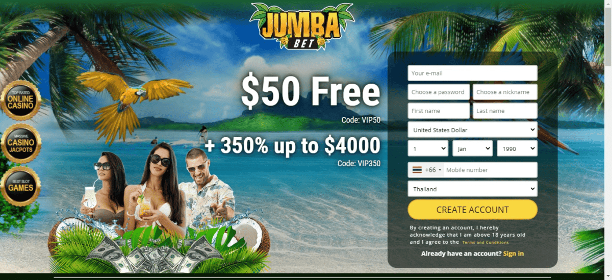 Certifique -se de não perder US $ 50 gratuitamente, sem requisitos de compra em agosto de 2024 usando o Jumbabet Sem bônus de depósito código.