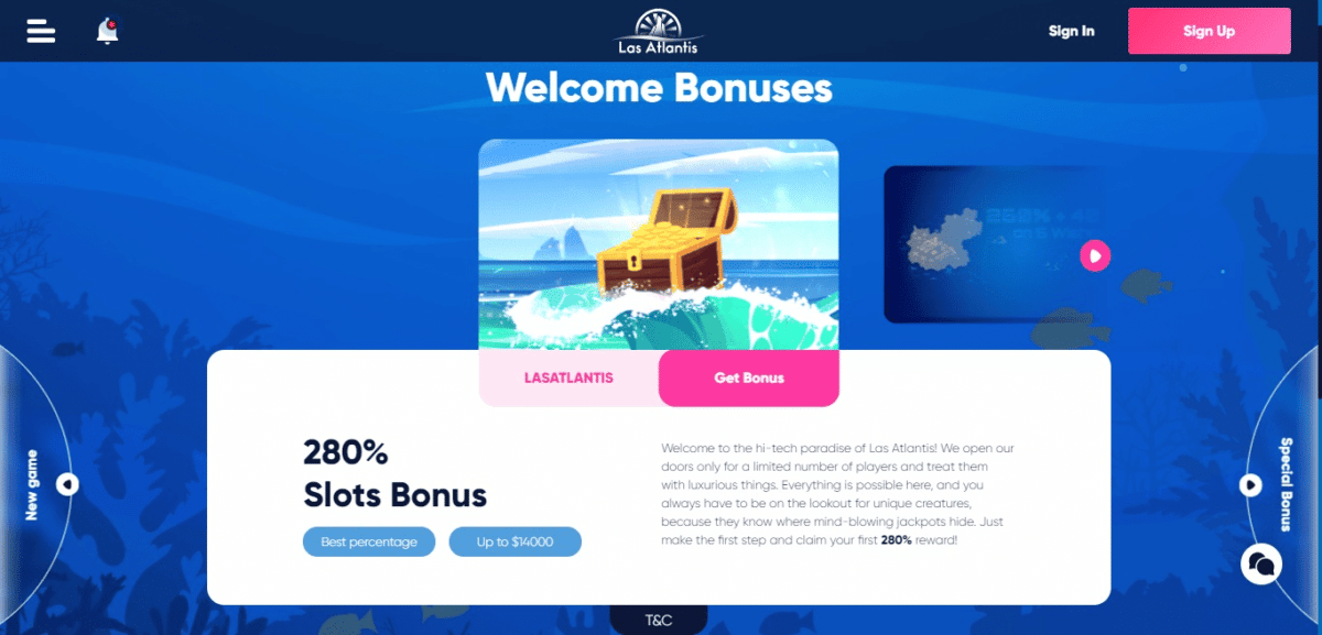 Enquanto houver várias ofertas de bônus de boas -vindas, a página inicial da Lasatlantis exibe um bônus de 280% como o principal recurso. Pela nossa experiência, essa é a coisa mais direta quando nos concentramos em recompensas de correspondência de depósito.