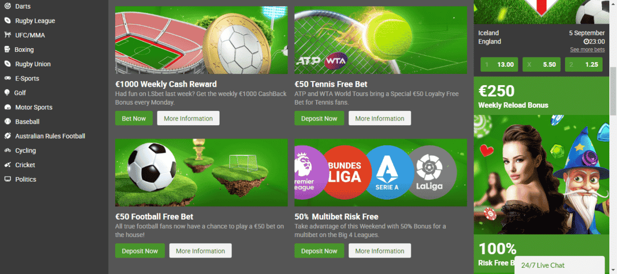 Se você está procurando muitas promoções gratuitas para apostas esportivas, além de grandes probabilidades de eventos esportivos em todo o mundo, o LSBET é uma boa escolha.