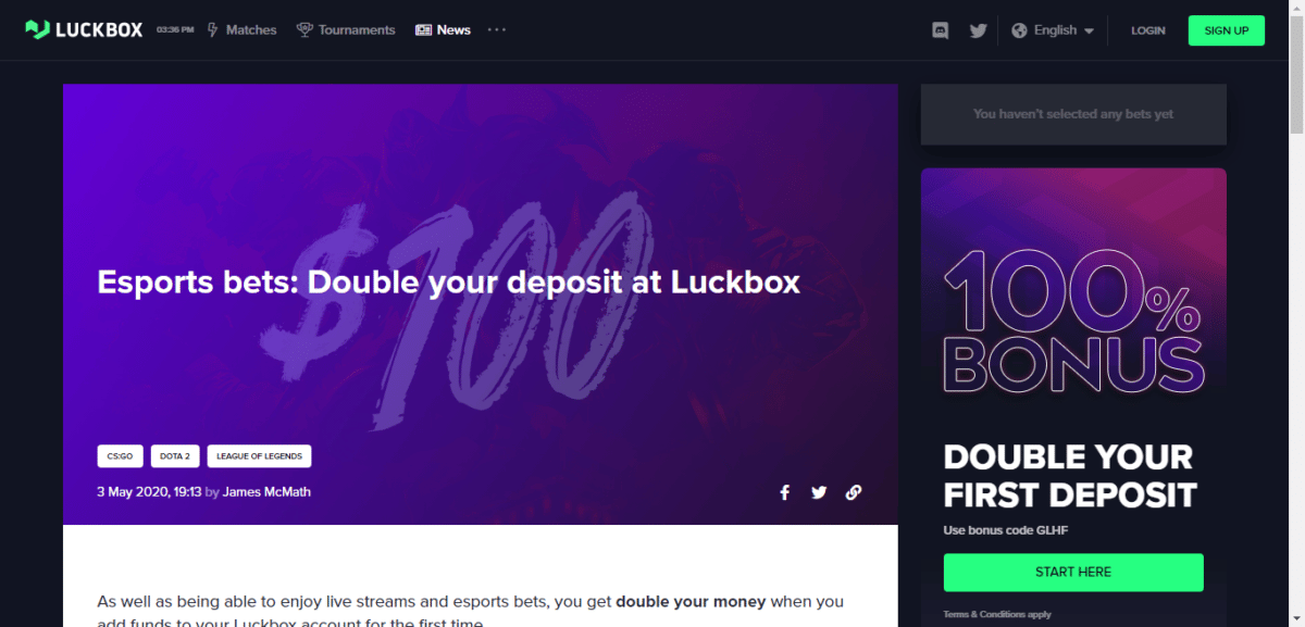 Uma horda de opções indisponíveis no tradicional Plataformas de apostas esportivas Também pode ser encontrado no Luckbox. A plataforma chegou para preencher a lacuna deixada por plataformas de apostas de eSports não compatíveis. Temos a sugestão de que, se a Luckbox tirar as coisas do chão; Estaremos entre os primeiros que ficarão felizes em experimentá -lo. O eSports está muito prejudicado e ainda está para ser uma opção melhor da norma (casas de apostas tradicionais), devido à sua falta de licenciamento e regulamentação.