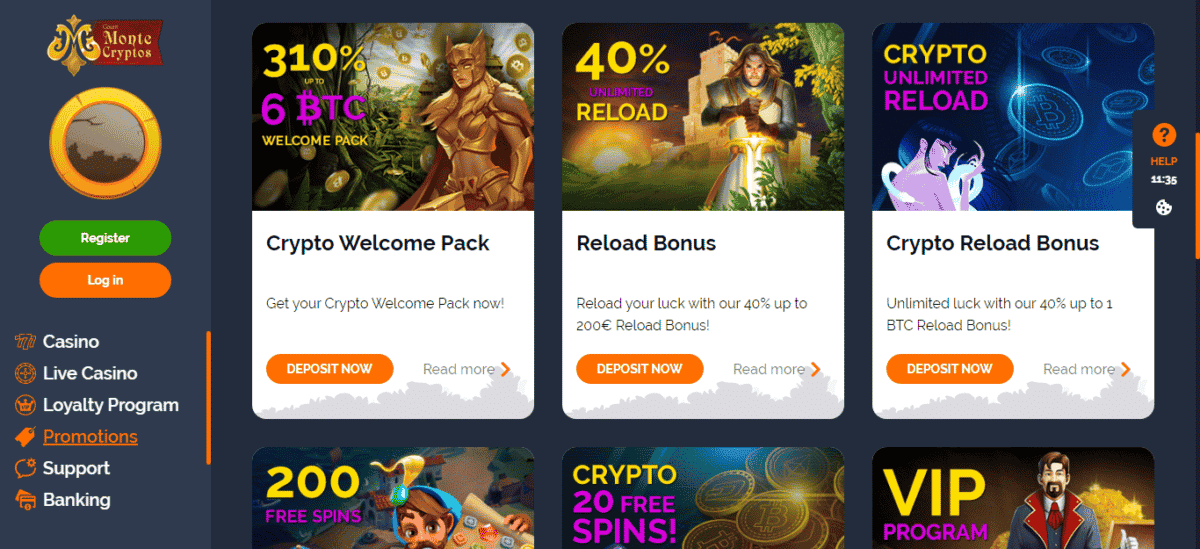 Para poder retirar o bônus no Monte Cryptos, você deve primeiro atender ao requisito de apostas que está definido em 35x. Uma vez concluído, você poderá sacar usando qualquer um dos métodos de pagamento.