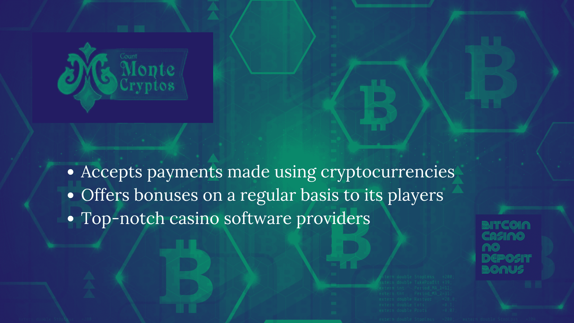 Os apostadores precisam concluir a capotagem em sete dias, para que não corram o risco de ter todo o equilíbrio de bônus de Monte Cryptos se tornando nulo e sem efeito. Os jogadores só podem obter um único bônus ativo a qualquer momento. Para reivindicar outro bônus, eles devem completar ou fechar o primeiro bônus.