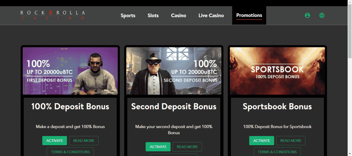 Se você é novo no Rock N Rolla, pode aproveitar seu lucrativo pacote de boas -vindas, que oferece novos jogadores até 0,02 BTC e 50 rodadas gratuitas para usar em jogos selecionados. Em vez de oferecer aos novos usuários apenas um bônus, este pacote adiciona bônus aos quatro primeiros depósitos dos jogadores, para que os fundos possam ser espalhados para mais prazer.