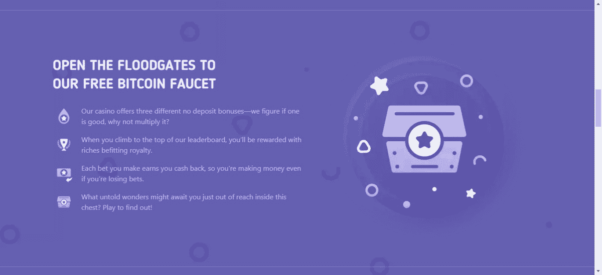 O cassino também oferece aos jogadores uma promoção mágica no peito. Um bônus que possibilita que eles abram o peito depois de alcançar vários pontos. O número de créditos dentro do peito é aleatório, mas esses números se enquadram em um determinado intervalo.