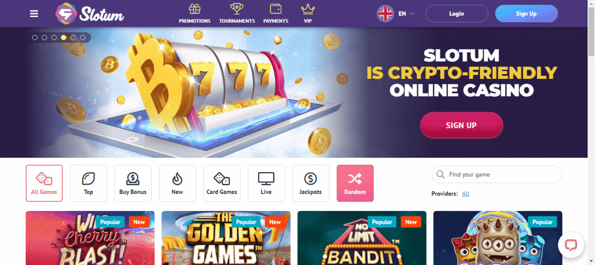 As criptomoedas também são aceitas no Slotum Casino. Os jogadores podem apostar usando;