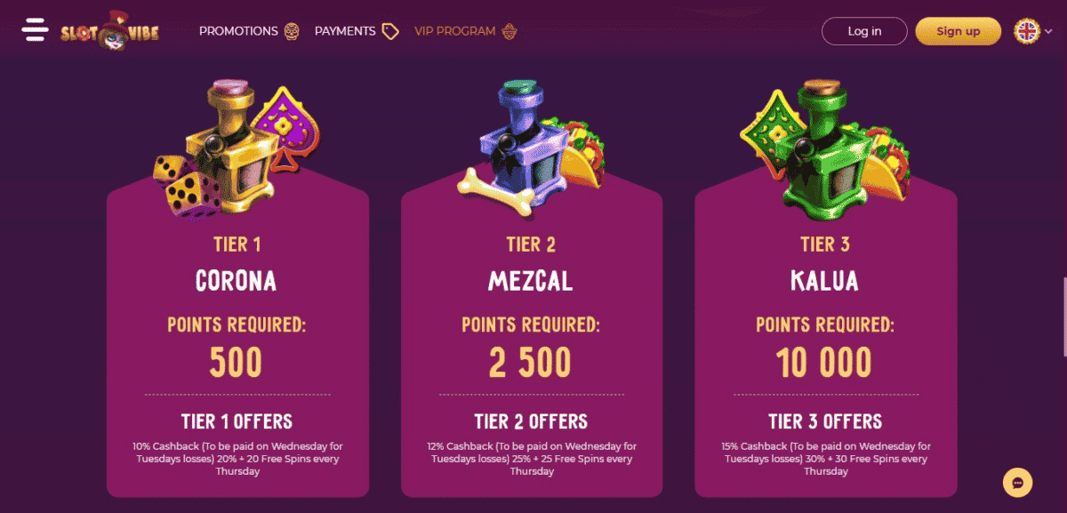 Além disso, quando você se torna um VIP, o Slotvibe quer comemorar seu aniversário com você, oferecendo até 500 rodadas gratuitas. O número de rodadas gratuitas que você recebe depende do seu nível no clube.