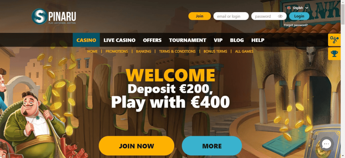 - Informações de bônus do cassino Spinara