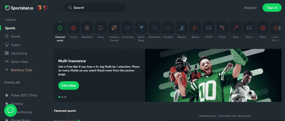 Nesse momento, o SportsBet.io oferece várias seções de sites, incluindo; Esportes, apostas ao vivo, adereços de jogadores, cassino e promoções. Atualmente, os usuários podem apostar em vários esportes, incluindo: