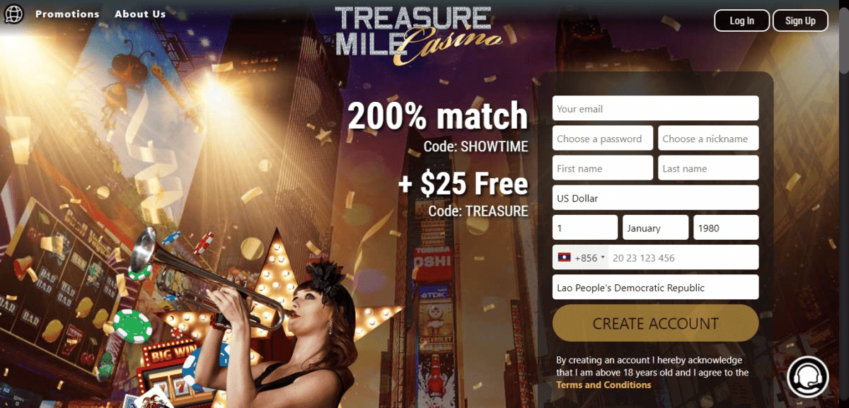 O Treasure Mile Casino oferece aos novos jogadores e, às vezes, jogadores já existentes a chance de vencê -lo, oferecendo códigos de bônus de depósito. Essa é uma maneira de vencer o cassino tentando alcançar um requisito de apostas para que você possa retirar o bônus.