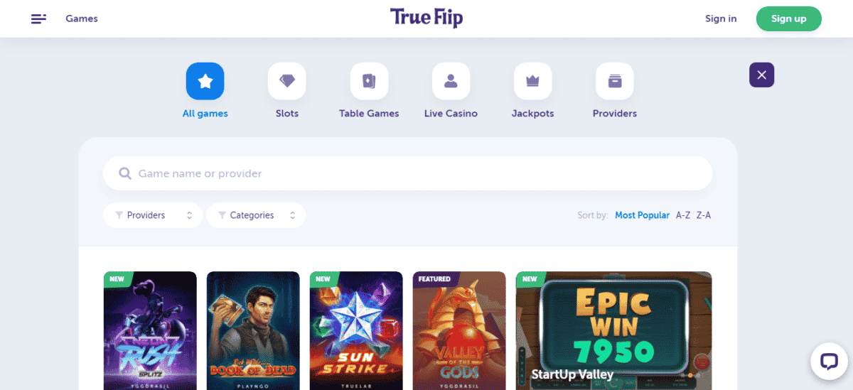 O site Trueflip.io foi lançado em 2016 e, ao longo dos anos, mudou drasticamente. É um dos líderes de fornecer tecnologia de blockchain inovadora ao setor de jogos de azar, e é por isso que é um dos mais populares do seu tipo.
