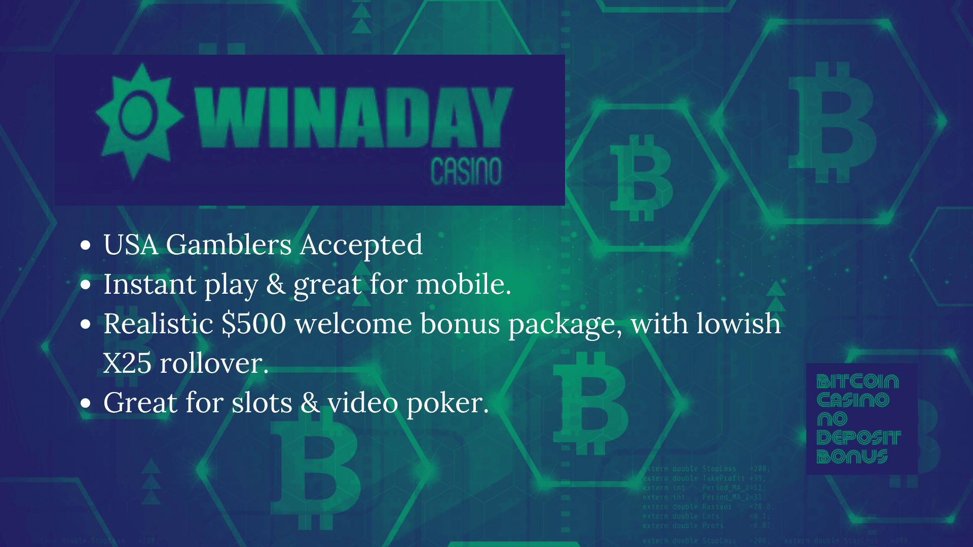 O Winaday Casino é um dos poucos sites de jogo que aceitam o Bitcoin que os jogadores dos EUA podemos acessar. Existe um grande código de depósito sem depósito disponível, juntamente com muitas outras ótimas promoções de depósito.